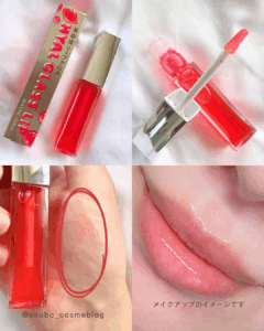 このリップグロスは下地として使うのはもちろん、単体で使ってもかわいい仕上がりになりますし、手持ちのリップの上に重ねて色や質感の変化を楽しむのも◎