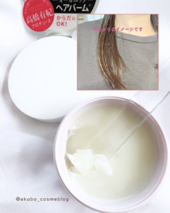 私個人の感想としては、体温でとろけるバームだから髪と馴染ませやすくて好印象!