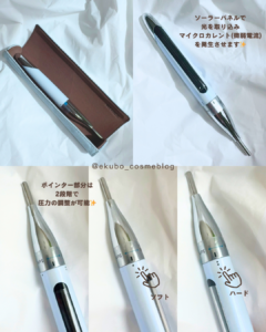- マイクロカレントヘッドは、ソーラーパネルを隠さないように圧力切替ハンドルを正しく持たないといけないので手が小さい私は当初少しだけ四苦八苦した