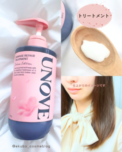UNOVEのこのシャンプートリートメントセットは【髪の保湿】【香り】【やわらかさ】をバランスよく叶えてくれる、素敵なセットでした♡