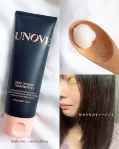 UNOVEのこのヘアトリートメントは【保湿感】【まとまり】【やわらかさ】をバランスよく叶えてくれる、素敵なヘアトリートメントでした♡